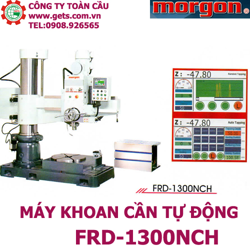 Máy khoan cần Morgon FRD-1300NCH-III hiệu Morgon sản xuất tại Đài Loan, đây là dòng máy khoan cần giá rẻ, độ khoan chính xác cao nhờ vào hệ thống điều khiển bằng NC. FRD-1300-III truyền động bằng thủy lực nên công suất và hiệu suất làm việc lớn.