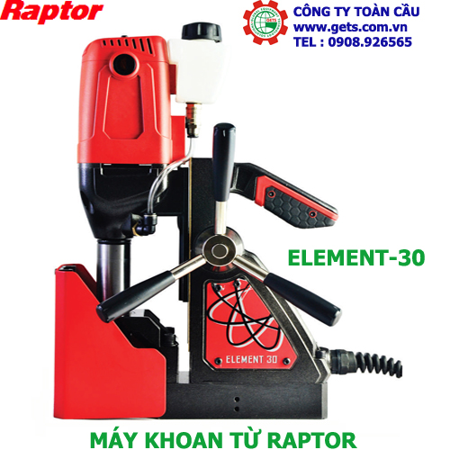 Máy khoan từ hiệu Raptor có nhiều model Element 30, Element 40, Elemnet 50, Element 75, Elemnet 100. tất cả các model này dùng để gia công khoét lỗ, khoan lỗ, tarô lỗ, vát mép lỗ...