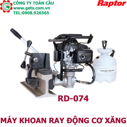 Máy khoan ray động cơ xăng RD074 hiệu Raptor sản xuất tại Anh Quốc. Đây là dòng máy khoan từ chuyên dùng để khoan đường ray vì máy khoan có thiết kế bộ đồ gá kèm theo, Máy khoan ray đặc biệt sử dụng trong các công trình xa xôi không có nguồn điện.